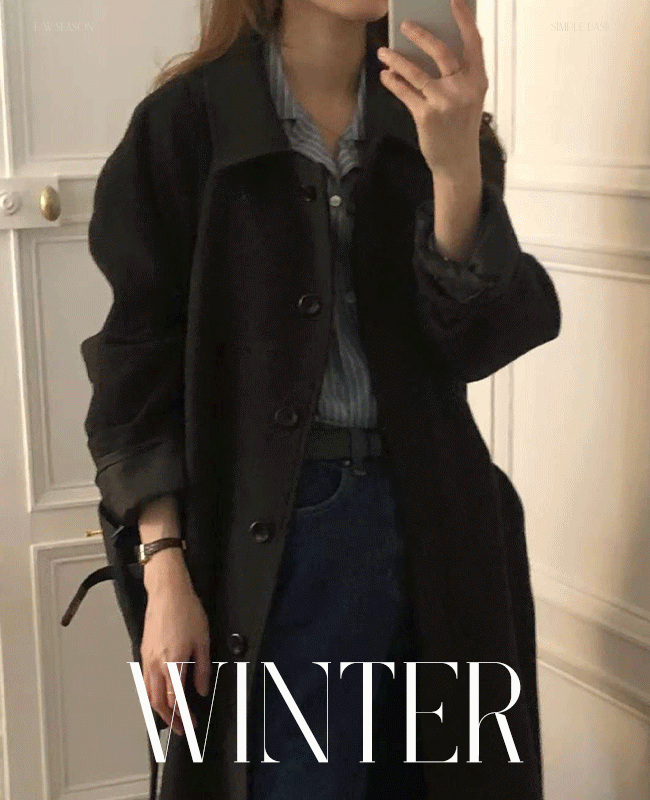 히든버튼 와이드카라 로브 울 롱코트 - 3color