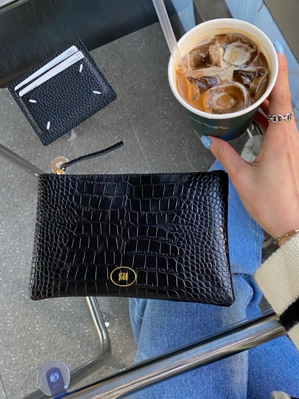 (자체제작/당일발송) 심플유 Sii 블랙 클러치 / 클레어미니 악어패턴 클러치