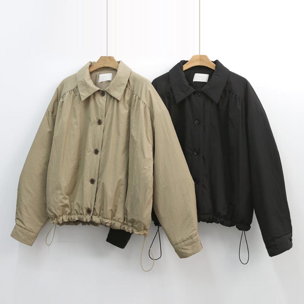 여자 잠바 2온스 스트링 본딩 셔링 퍼프 가을 점퍼