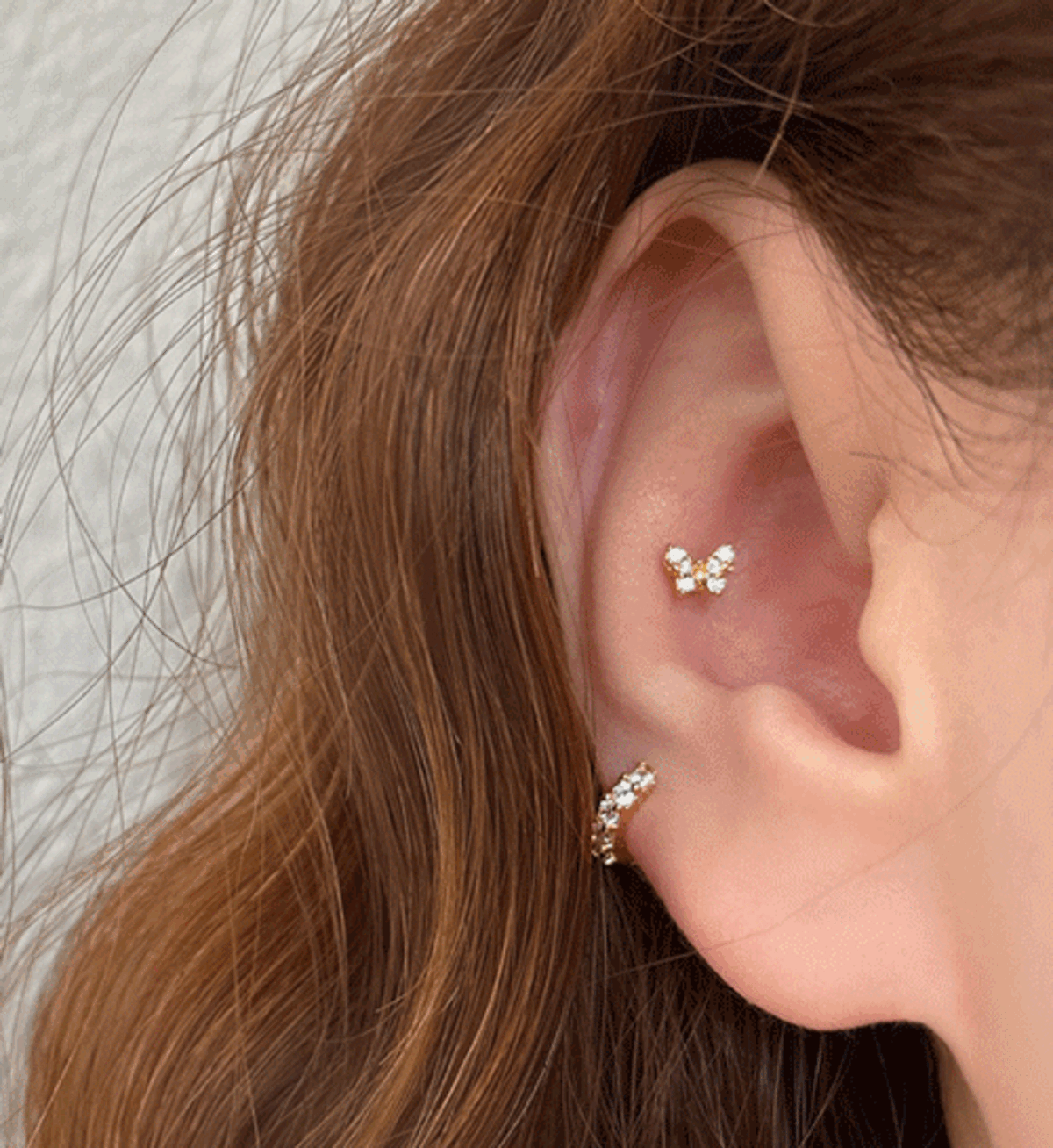 [무배] 큐빅 나비 5석 미니링 피어싱 세트 2set / 3color
