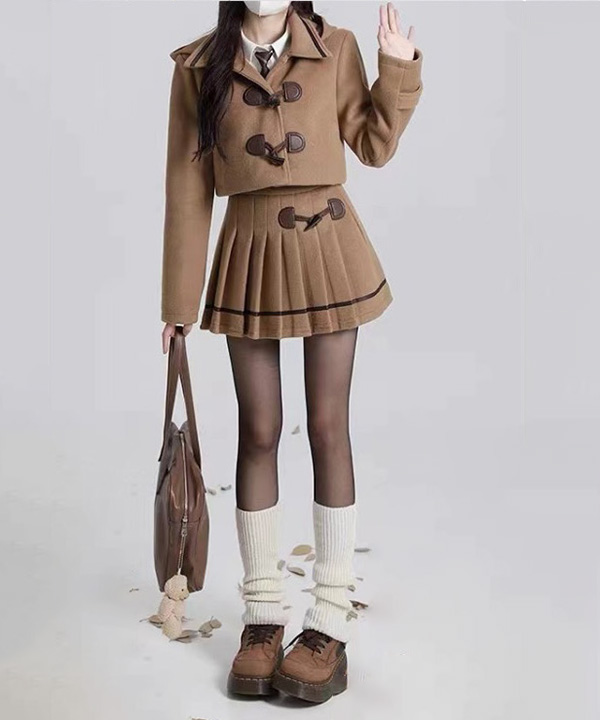 무료배송 [코디세트 자켓+스커트] 카멜플리츠 모직투피스룩 S-XL빅사이즈 [#떡볶이 #더플]