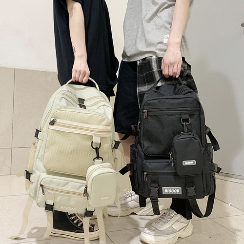 책가방 무지 포켓 블랙 화이트 학생 백팩 대학생 고등학생 중학생