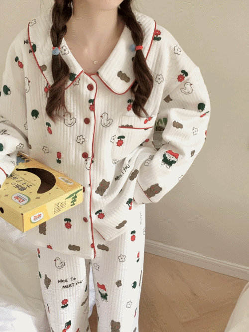 라덕 누빔 긴팔 잠옷 (1color)
