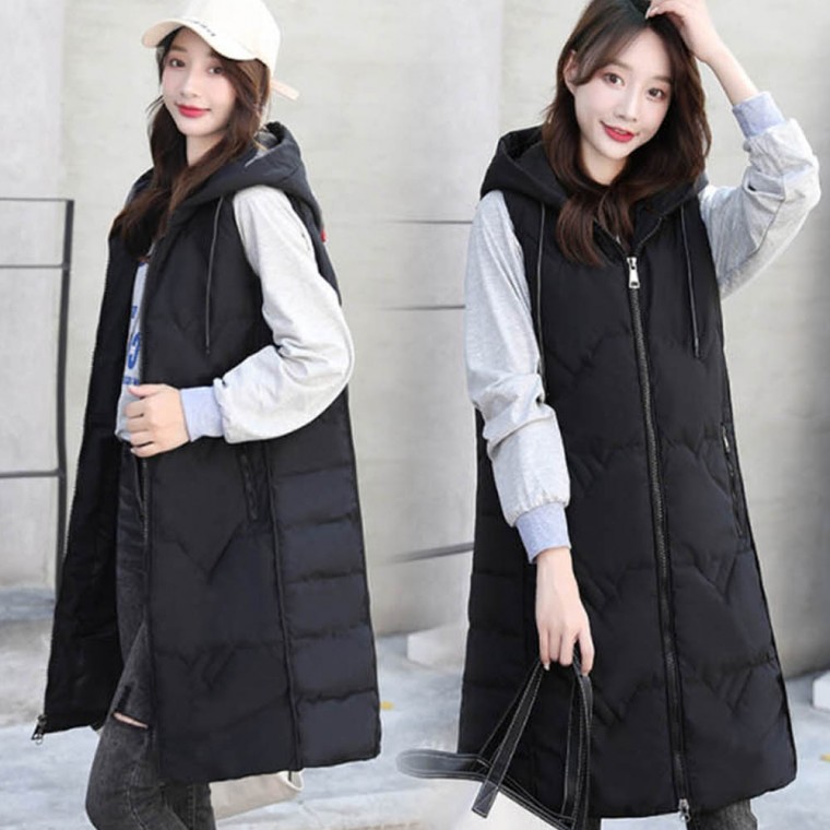 RON 롱패딩 조끼 후드 장착 집앞 동네앞 멋스런 코디 패션 여자 여자롱 여성 겨울