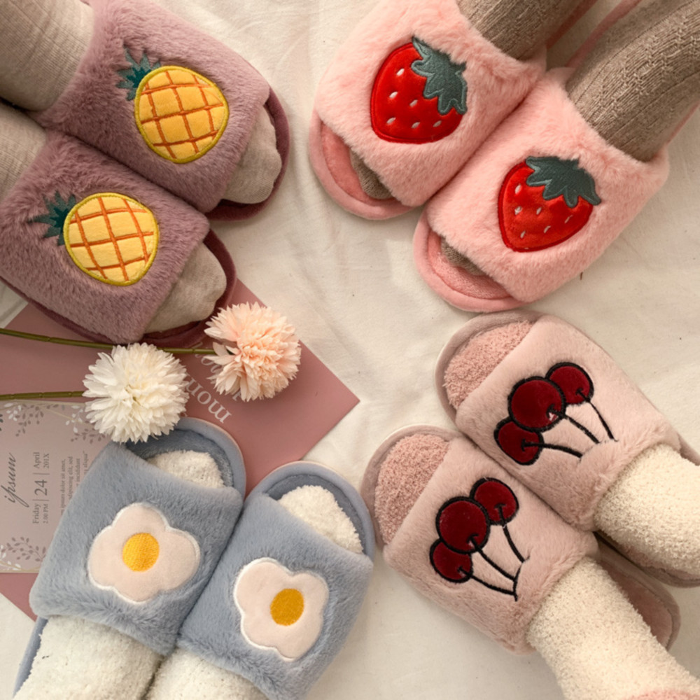 후르츠 과일 퍼 밍크 사무실 겨울 여성 실내화 슬리퍼 4color