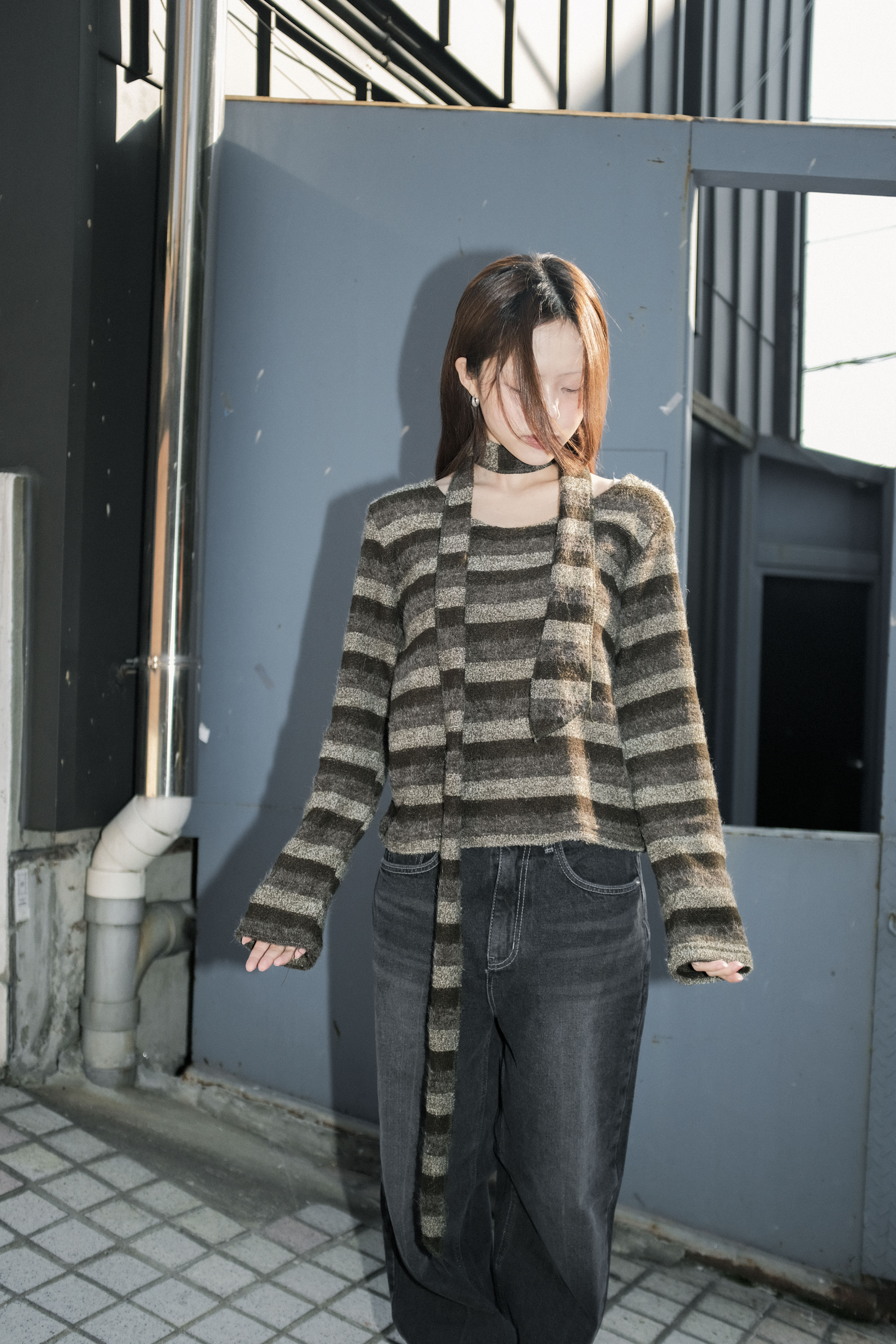 Angora Knit Top Scarf Set 2color