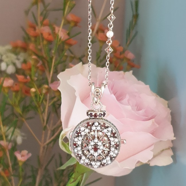 로쿠잔 로켓 목걸이 뚜껑열리는 보석함 사진넣는 목걸이 팬던트 가넷 에메랄드 루비 진주 총4가지