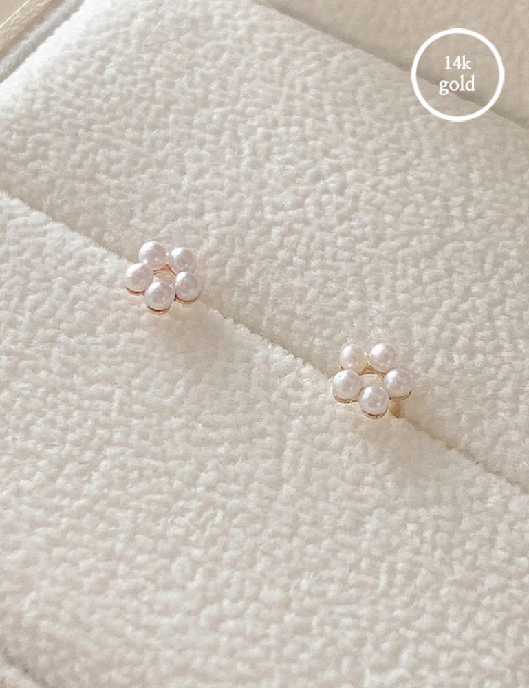 14k 미니 진주 꽃 피어싱 / 데일리용 이너컨츠 금 귀걸이