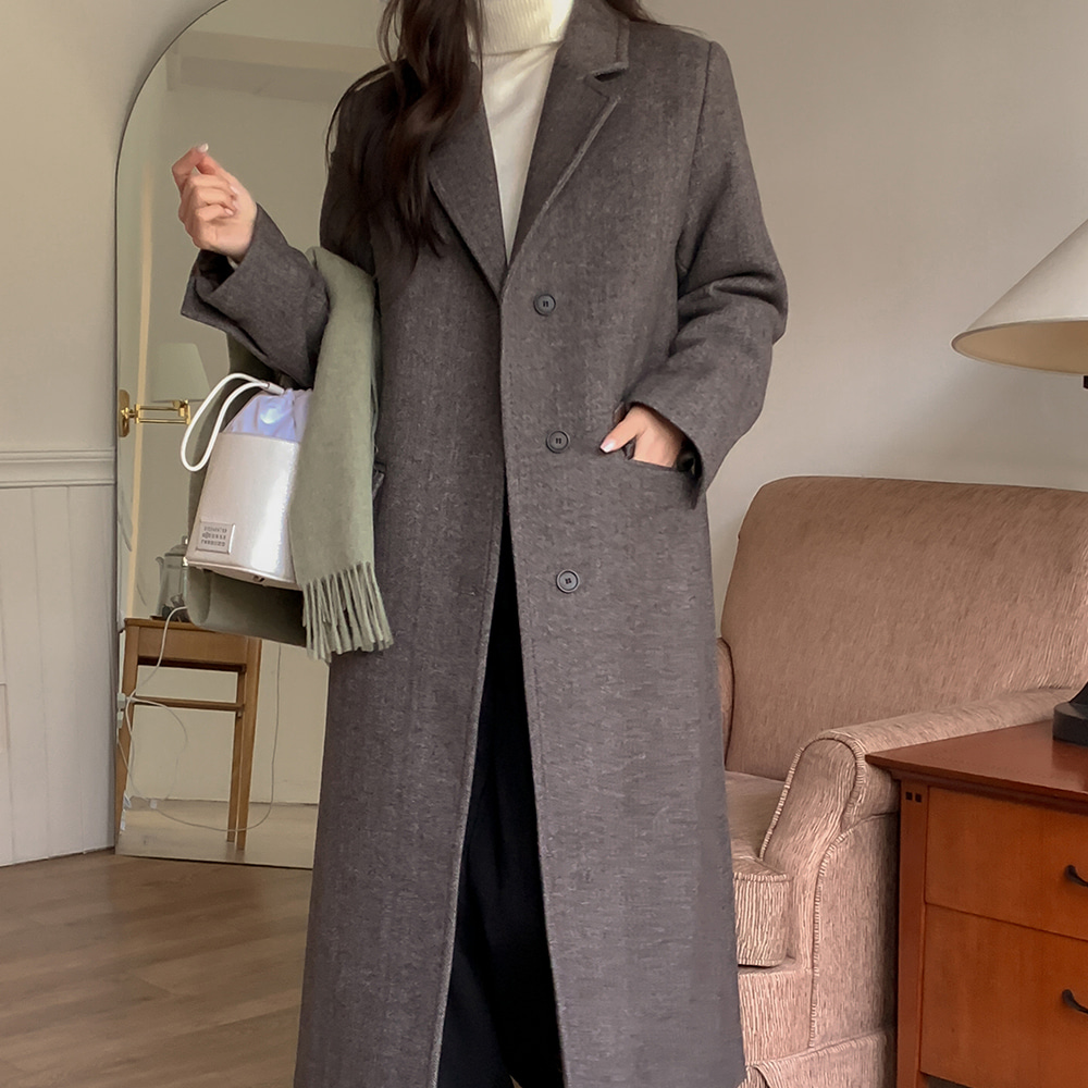 아이비 울 헤링본 포켓 롱 싱글 코트