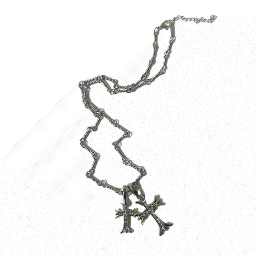 더블 크로스 십자가 큐빅 레이어드 볼드 체인 목걸이 / 유니크 스트릿 힙한 힙 엔틱 빈티지 펑크 갸루피스