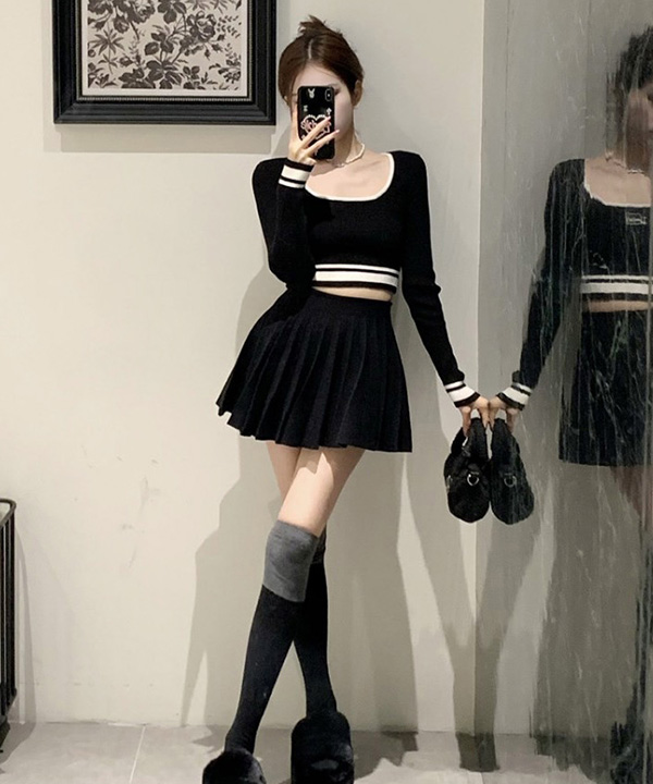 무료배송 [코디세트 탑+스커트+니삭스] 머리부터발끝까지 하이틴 코디룩