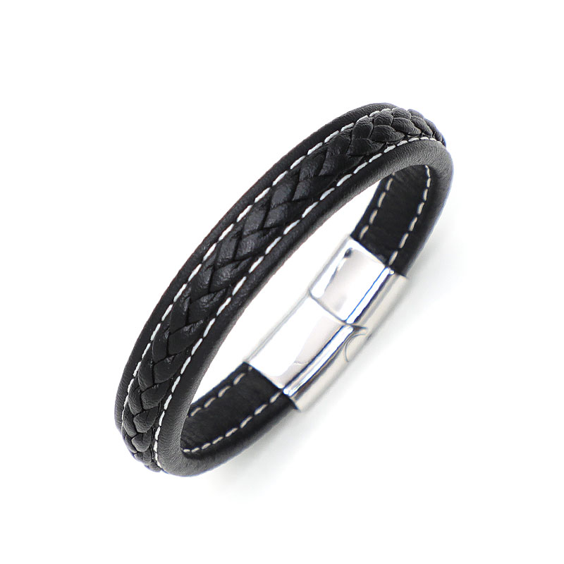 CRJ2027B-BK 스티치 레더 가죽팔찌 남자팔찌