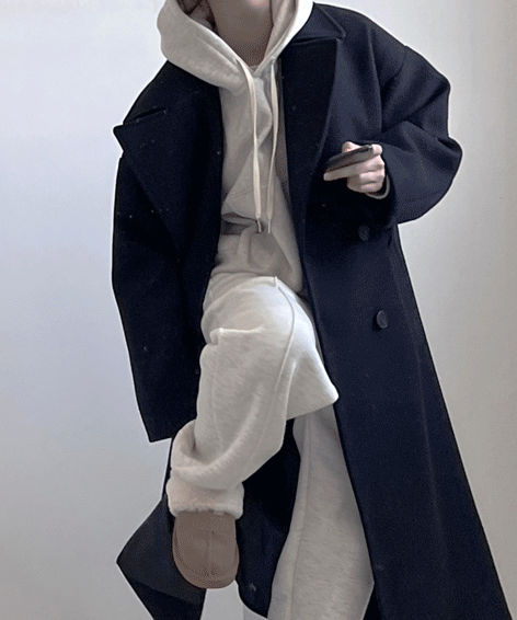 [품넓은] 오버핏 베이직 더블코트 2color 블랙 베이지