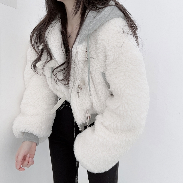 [왕도톰/전체밍크안감] 밍크 퍼 버클 뽀글이 겨울 숏 후드 점퍼
