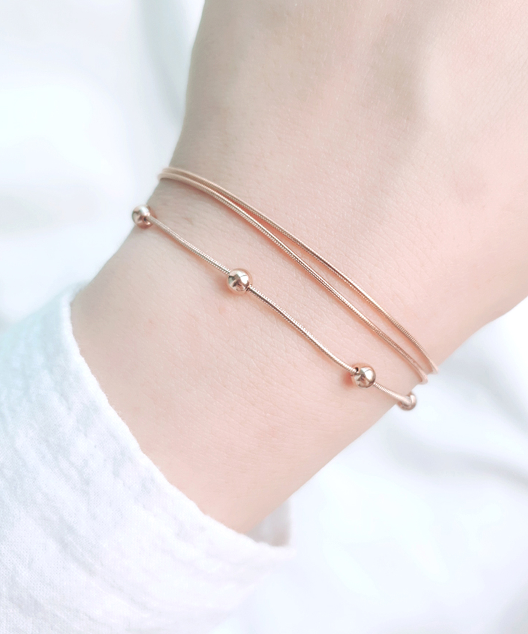 써지컬스틸 뱀줄 볼체인 팔찌 실버 로즈골드