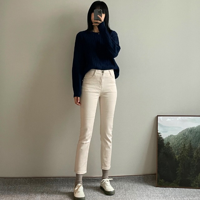 여자 허리밴딩 약기모 슬림일자 겨울 팬츠