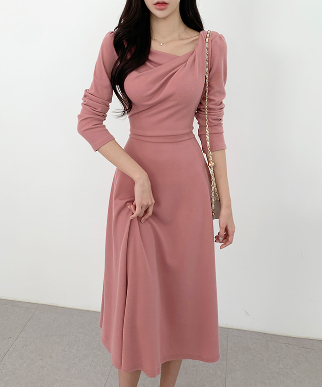 낸시 언발 꼬임 스퀘어넥 니트 롱 플레어 하객 원피스 (겨울 하객룩)