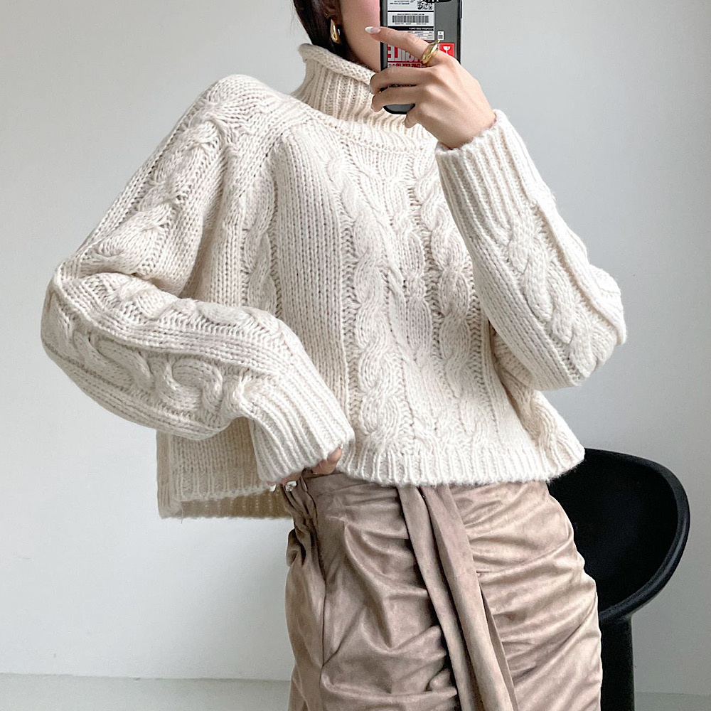 니트 목폴라 폴라 레이어드 겨울 크롭 겨울 크림 검정 여자 숏 예쁜 이너 꽈배기 티셔츠