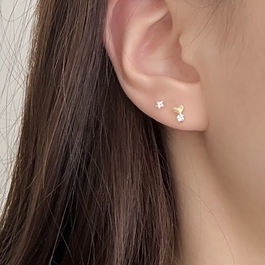 14K 10K 하트 큐빅 드롭 피어싱 귀걸이
