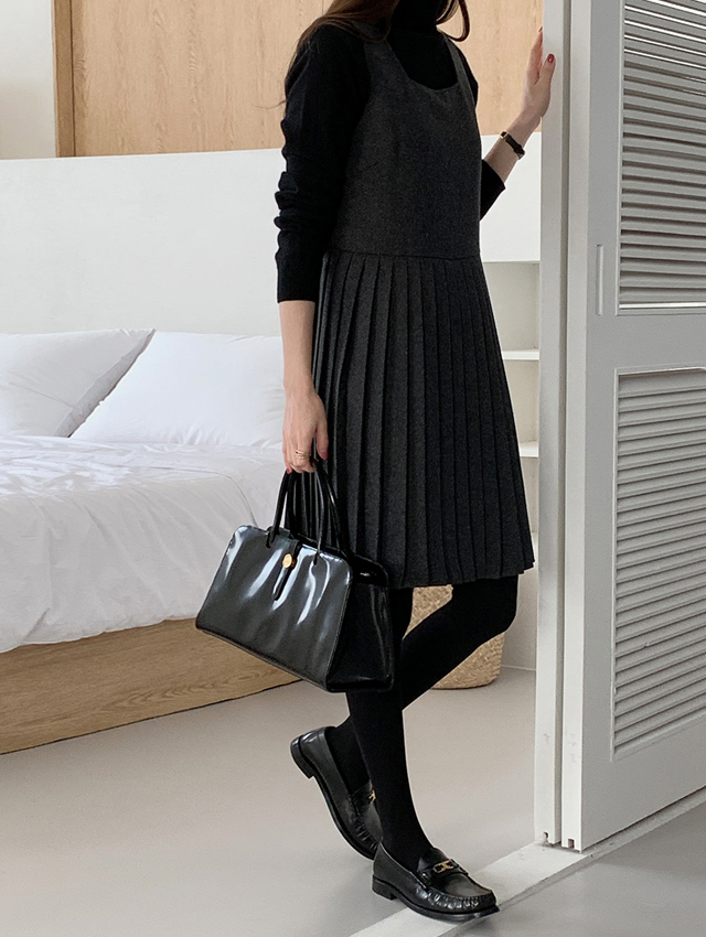 mop319 플리츠 울 스퀘어넥 뷔스티에 롱원피스
