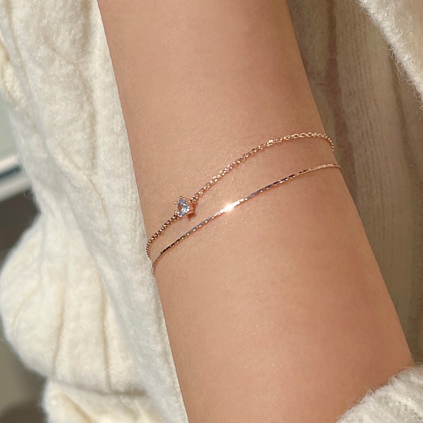[당일] 실버925 데일리 큐빅 펜던트 두줄 레이어드 뱀줄 체인 은 팔찌