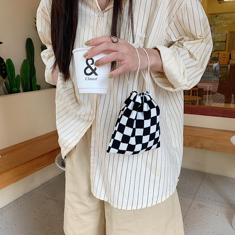(2종) 체커보드 체크무늬 화장품 생리대 미니 복조리 파우치