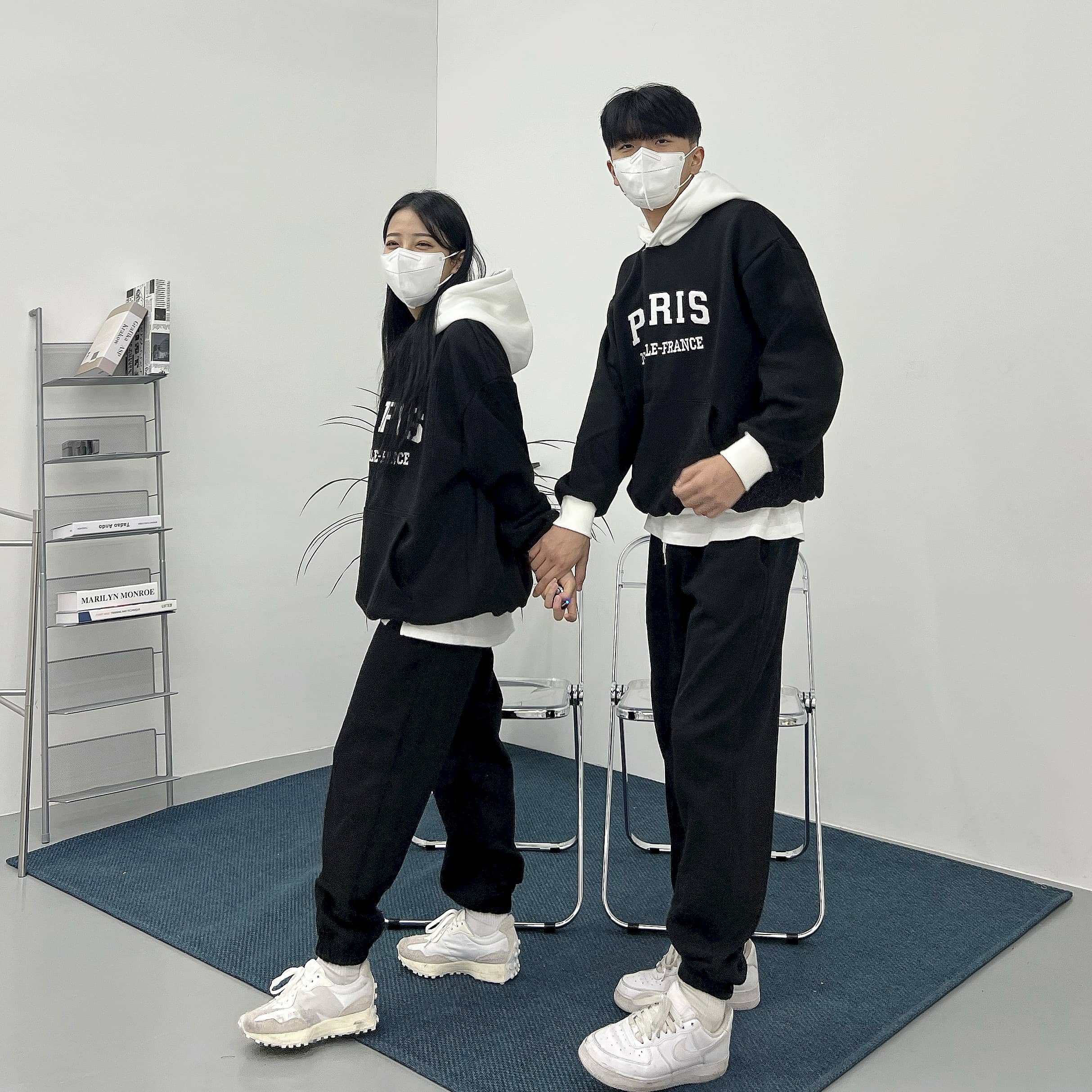 [남녀공용/오버핏]배색 후드 티 루즈핏 기모 조거팬츠 커플 트레이닝 복 세트 츄리닝 셋업 커플 시밀러룩