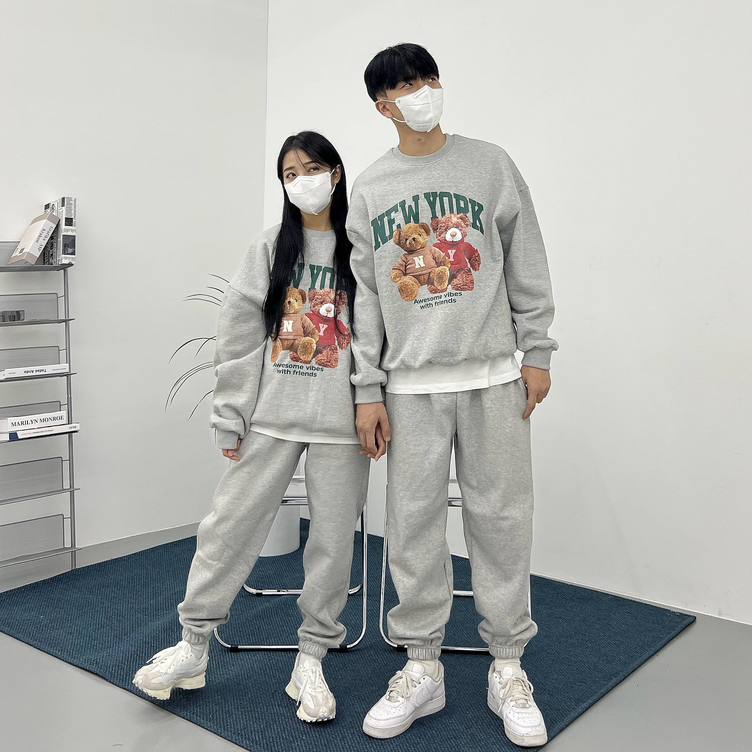 예쁨보장❤️🔥뉴욕 곰돌이 오버핏 루즈핏 맨투맨 기모 남녀공용 조거 바지 트레이닝 세트 츄리닝 셋업 데이트 캠핑룩 커플 시밀러룩