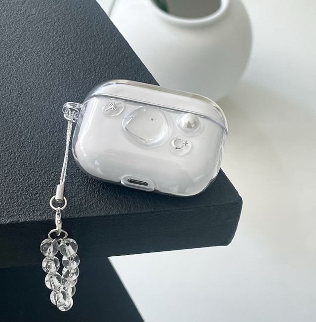made]silver water drop 투명 레진 에어팟케이스 버즈케이스 키링