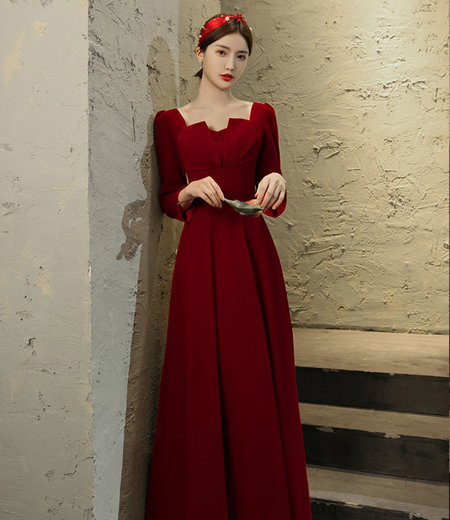 셀프촬영 이벤트 파티 스퀘어넥 레드 롱 드레스