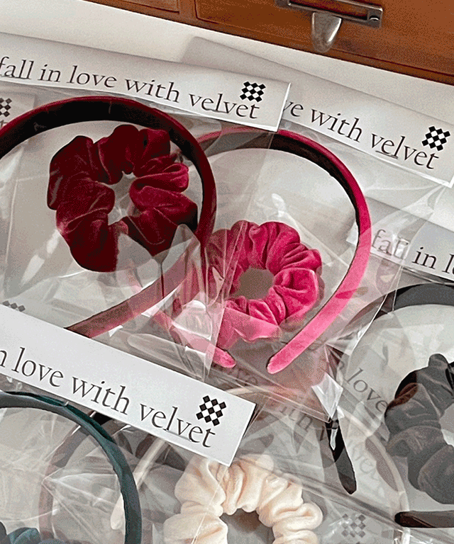 [1+1/only purelin]비비드 벨벳 슬림 데일리 분위기 여신 헤어곱창 머리띠 세트