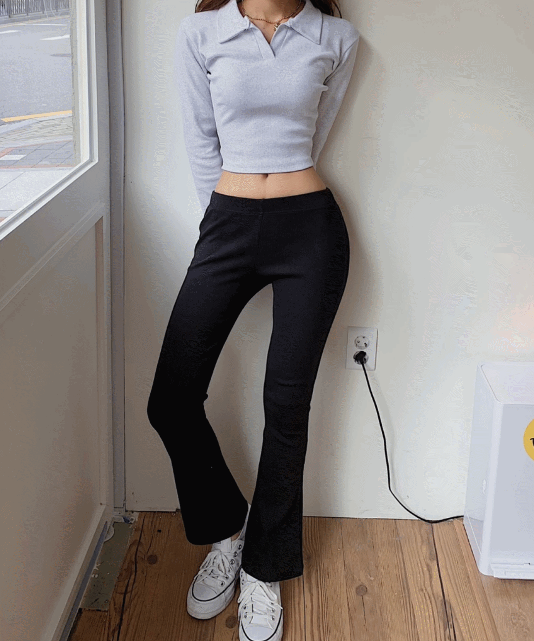 [뱃살보정/발레코어]필라테스 운동복 요가복 헬스복 상의 커버업 세미 크롭 긴팔 카라 골지 티셔츠 발레리나티 롱슬리브