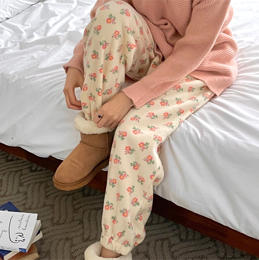 후리스 꽃무늬 플라워 조거 팬츠 바지