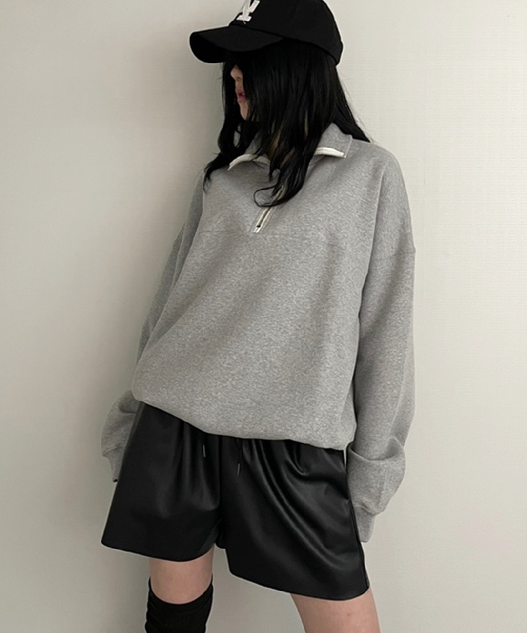 기모 반집업 맨투맨 (T121) 아노락 반목티 무지 오버핏 박시 티셔츠