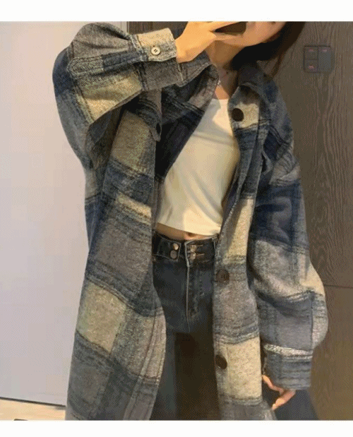그레이무드 모직 울 박시 롱남방 체크자켓 겨울자켓