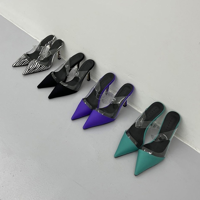 HS1259 스틸레토 시크 투명 스트랩 하이힐 뮬 슬리퍼 9cm