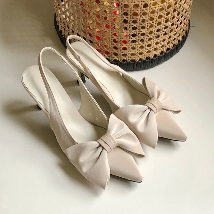 HS1520 뾰족코 러블리 리본장식 슬링백 미들힐 7cm