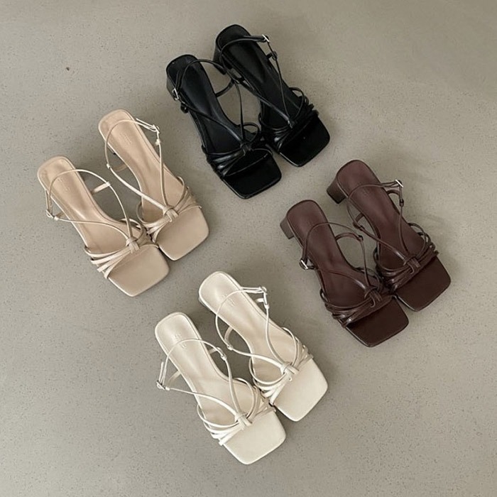 HS1788 멀티스트랩 매듭 스퀘어 샌들 힐 5cm
