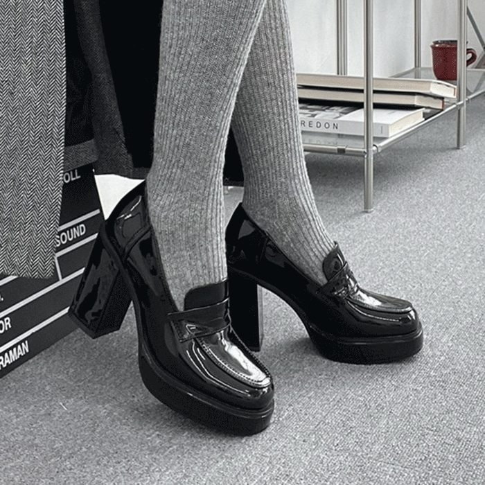SwingBee 에나멜 블랙 페니 로퍼스타일 하이힐 (9cm/1색상) sb01092