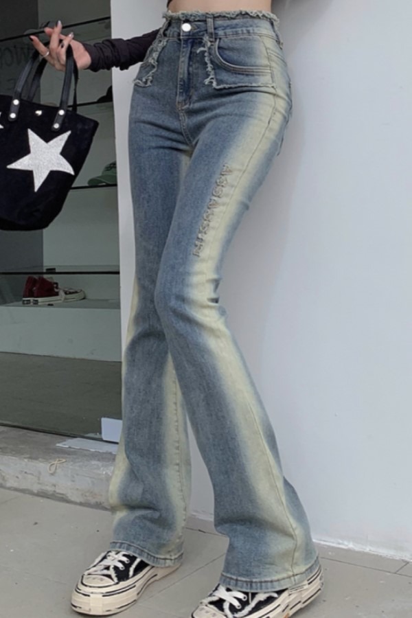 데니 사이드 워싱 레터링 데님 스키니 슬리밍 팬츠