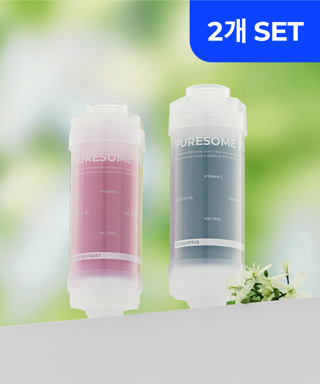 퓨어썸 비밀필터 2개 세트(8가지 향) (샤워기 교체없이 바로사용 염소제거 샤워필터)