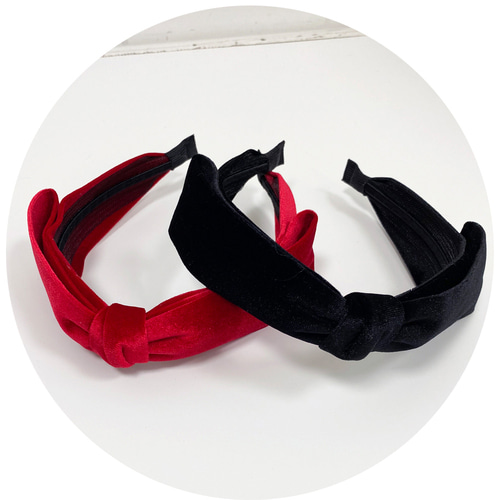 [2컬러] 벨벳 리본 머리띠 헤어밴드 파티룩 크리스마스 연말 겨울 왕리본 (블랙 레드)
