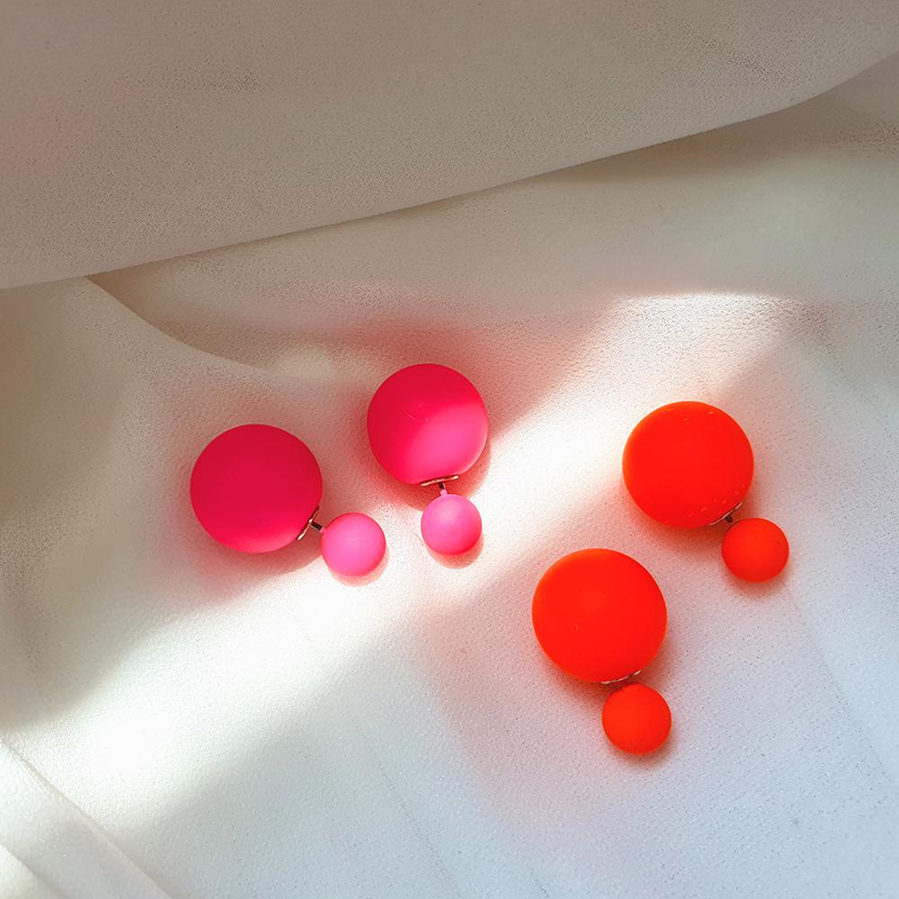 형광 핑크 오렌지 네온 트윈 볼 봉봉 귀걸이