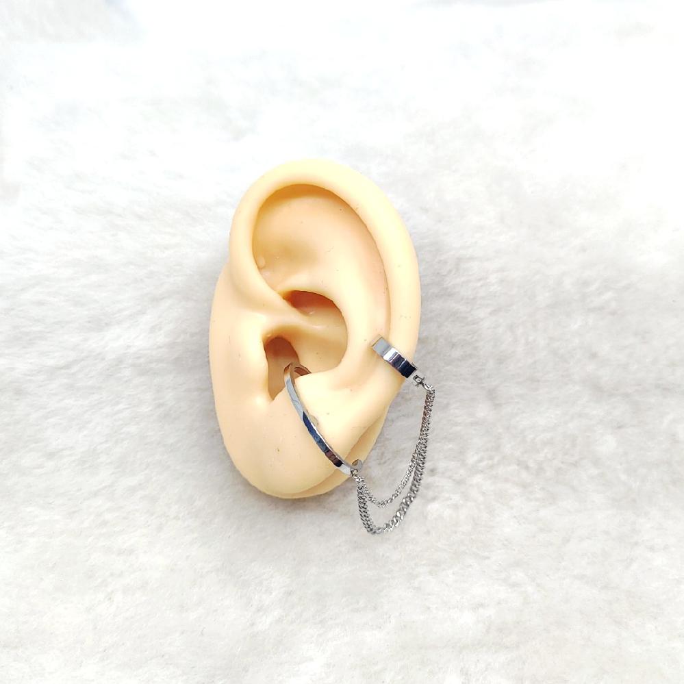 심플 이어커프형 체인 투핀 피어싱(써지컬스틸)