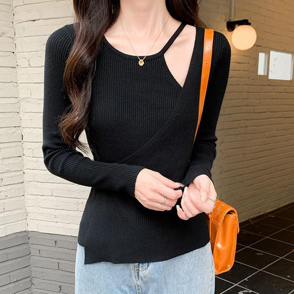 10월 코디 컷아웃 원숄더 어깨 트임 니트
