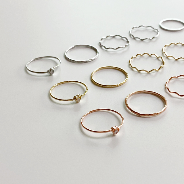 하트 큐빅 물결 레이어드 실반지세트 3color