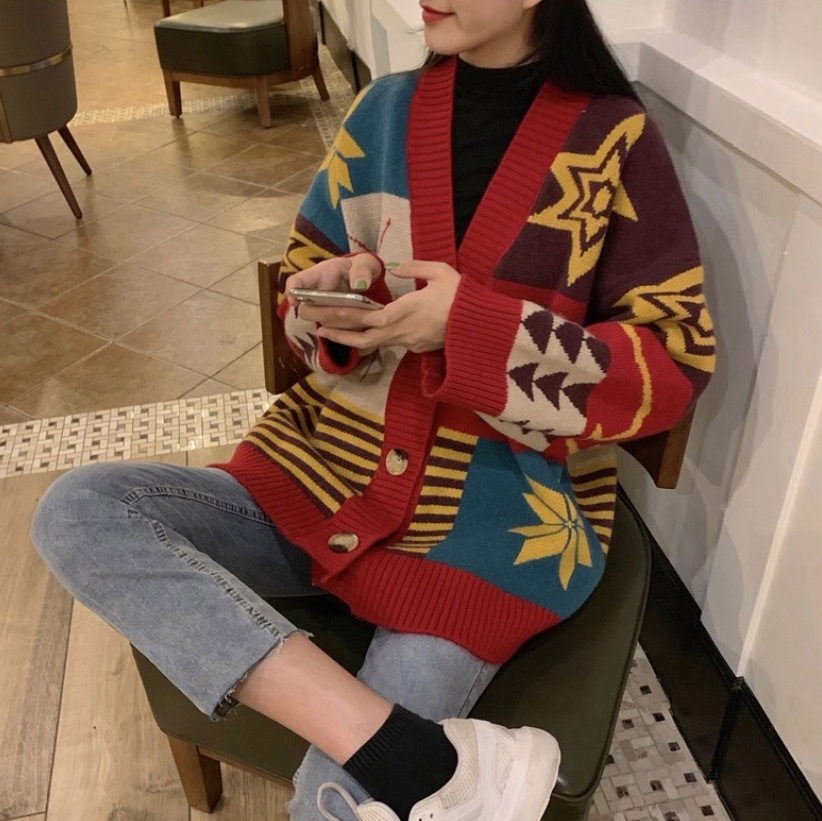 소장각 노르딕 빨간 오버핏 브이넥 롱 니트 가디건 레드 루즈핏 롱가디건 [당일 출발]