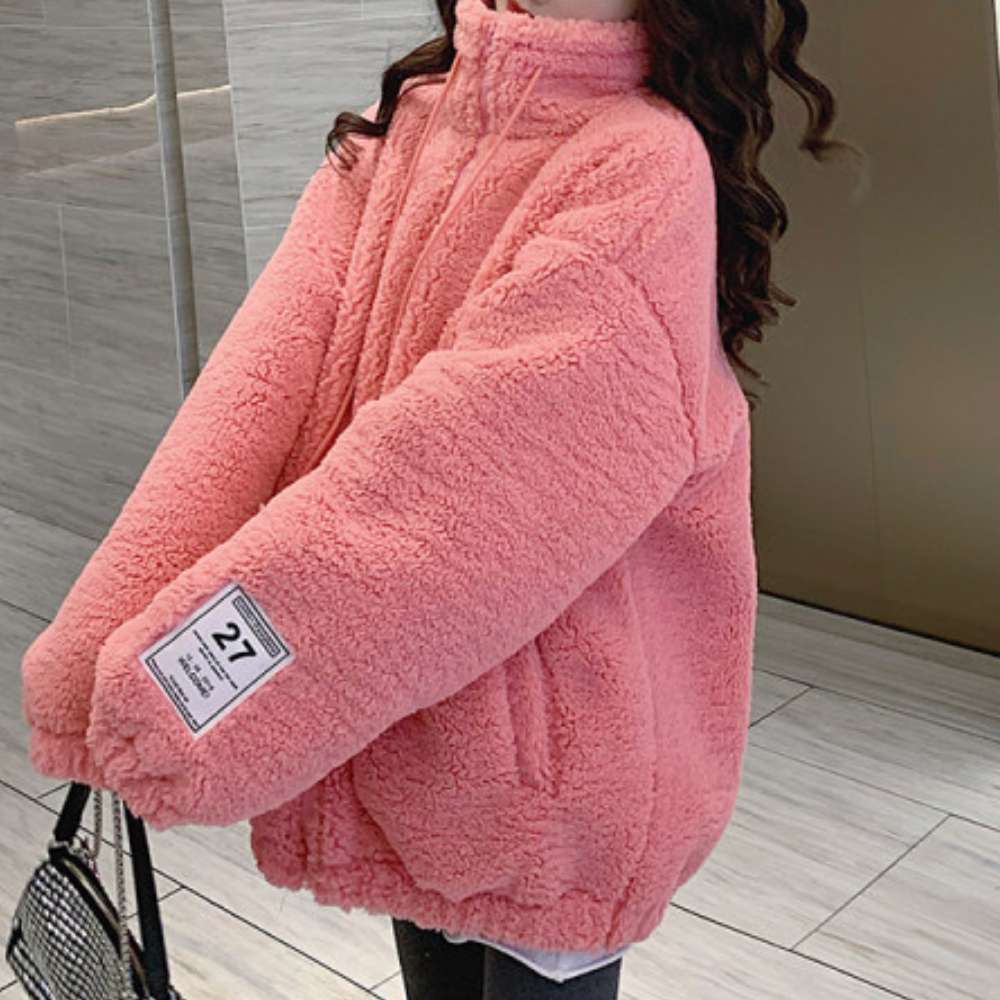 진핑크 후리스 플리스 하이넥 여성 캐주얼 집업 점퍼 J28
