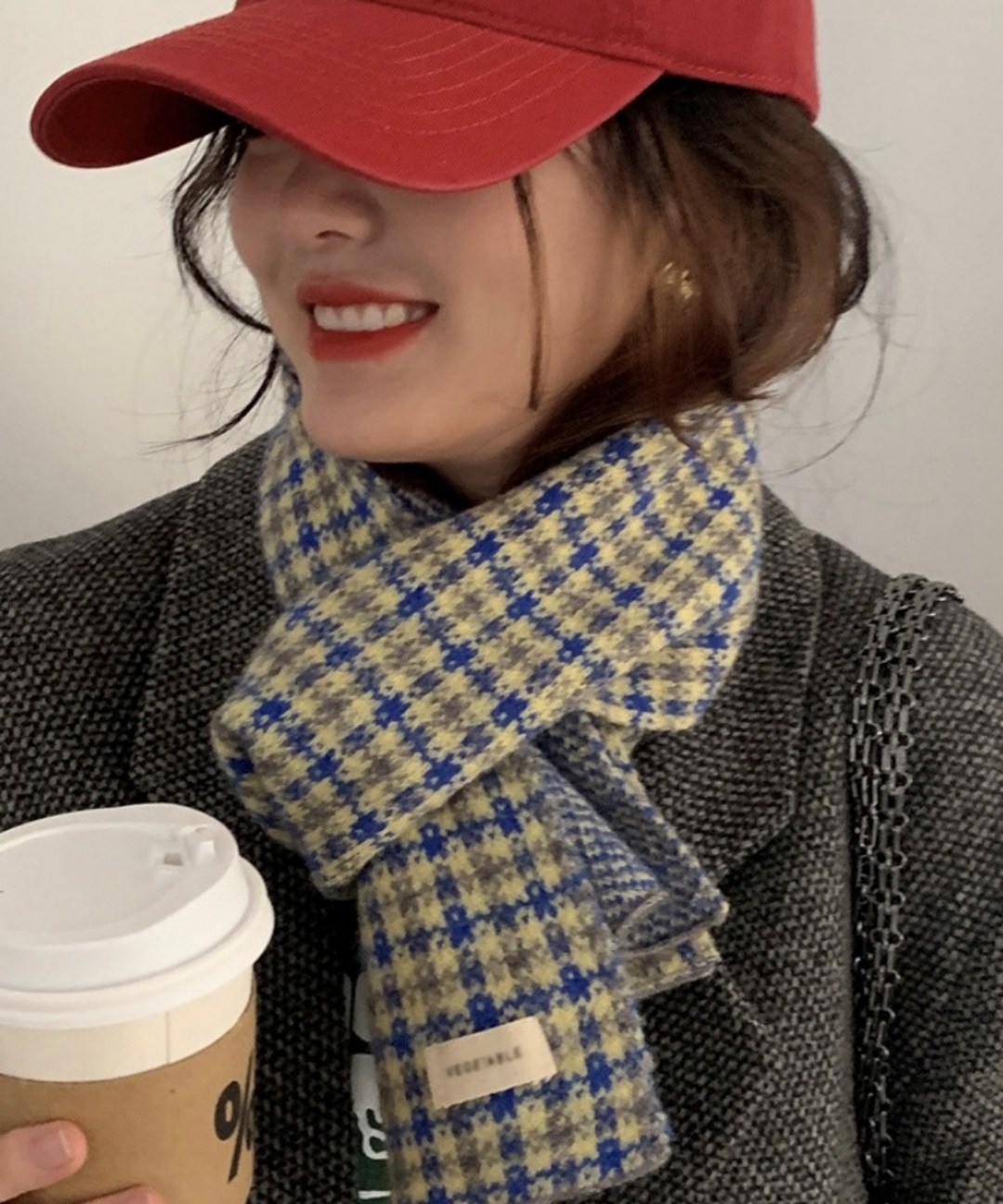 여성 보들 체크 니트 머플러 초록 레드 블루 퍼플 브라운