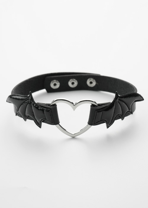 날개 하트 펜던트 스트리트 래더 블랙 초커 목걸이 N-0182